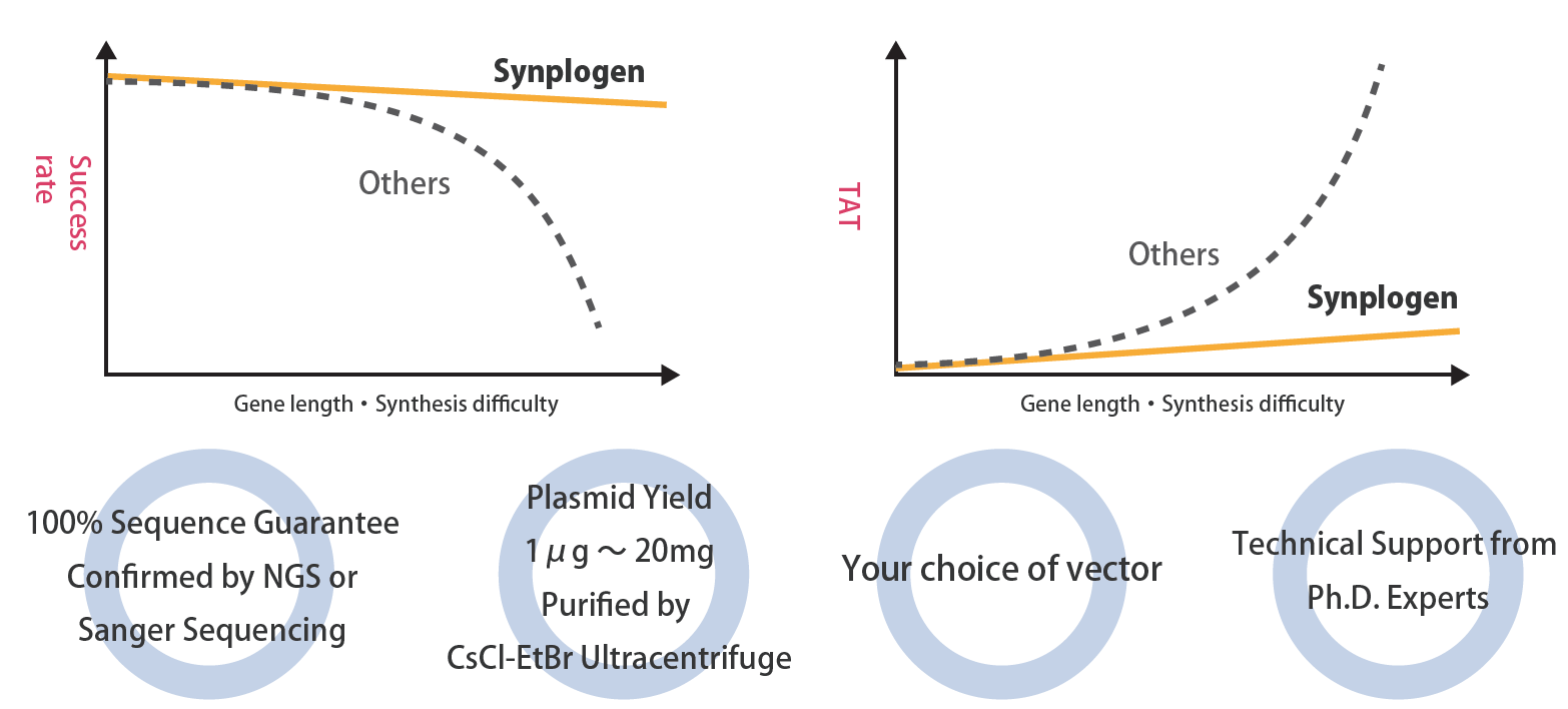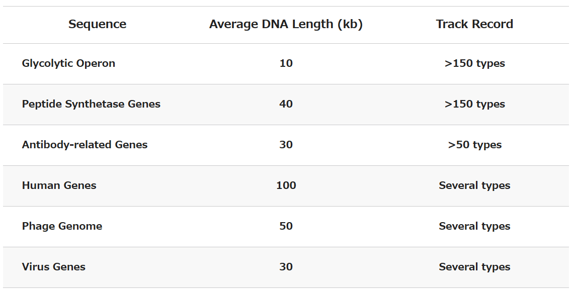 OGAB™ has a proven track record of synthesizing over 500 types of DNA. At Synplogen, we have successfully synthesized almost all of the DNA that we have been commissioned to synthesize.