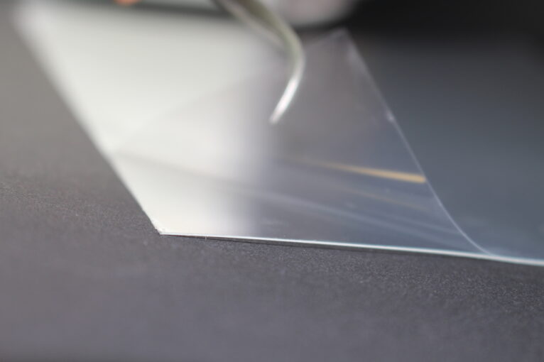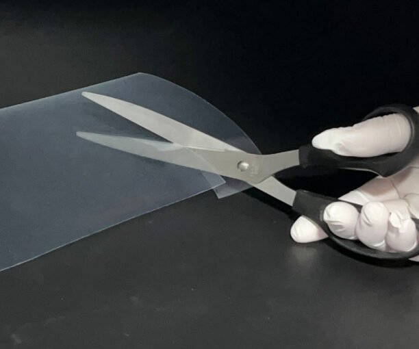 Double-coated adhesive tape with a wide range of thickness from 10um to 100 um. The core material is PET, which provides excellent handling and processability. The colorless, transparent tape can be used to fabricate microfluidic channels and laminate films. The backing film has tabls for easy removal. Cut to your desired design with scissors or cutters.